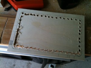 Drilling out mid section By Steve Gossett June 10, 2013 No Comments I dont have a lot of power tools so I took out the middle the old fashioned way, drilling a bunch of holes and then taking a hand saw to it and then a course wood rasp. ← Previous Next → Leave a Reply Cancel replyYour email address will not be published. Required fields are marked *Comment * Name * Email * Website Save my name, email, and website in this browser for the next time I comment.